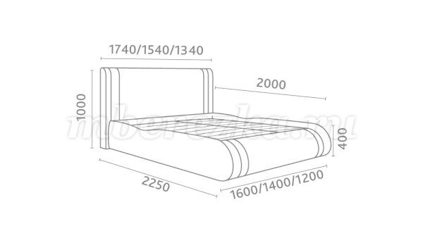 Кровать доступна в двух размерах:  1400 и 1600 мм.