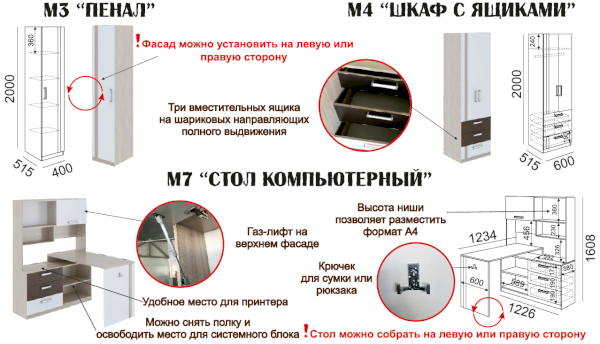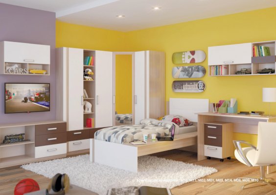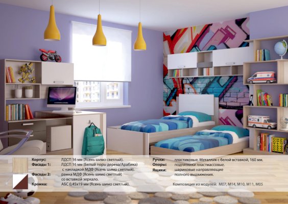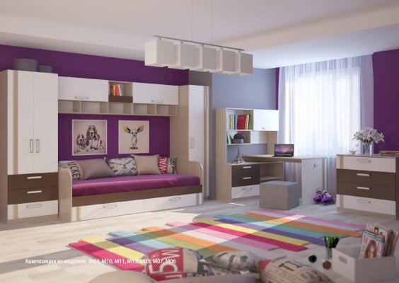 1. Есть модули для функционального обустройства комнаты двоих детей.