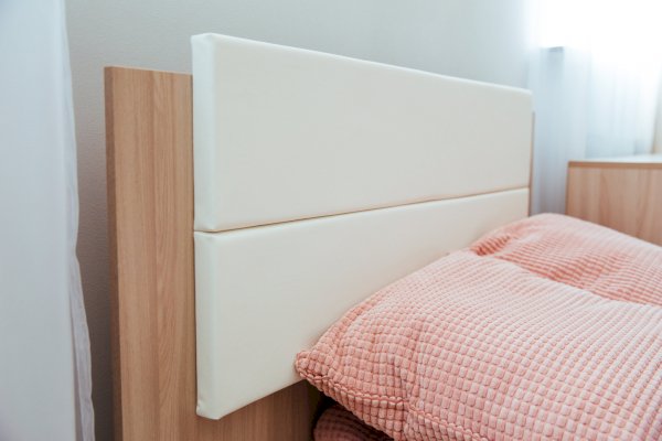 7. Кровати с мягким изголовьем из матовой экокожи Galaxy New White.