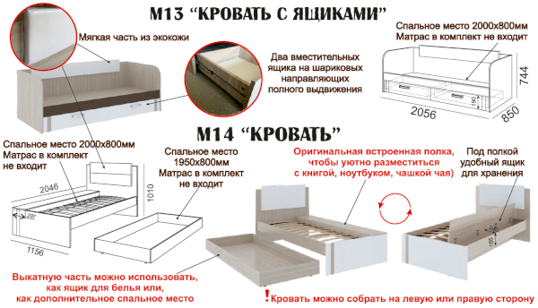 Кровать с ящиками М13