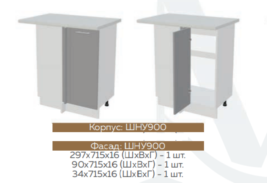 ШНУ900 Шкаф нижний угловой Графит софт/Белый снег софт