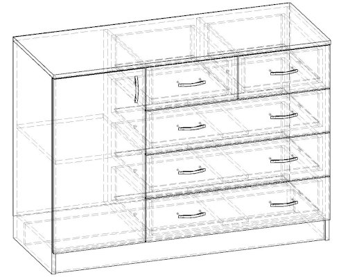 • Корпус, полки и фасады изготовлены из ЛДСП 16 мм с кромкой ПВХ 0,4 мм.