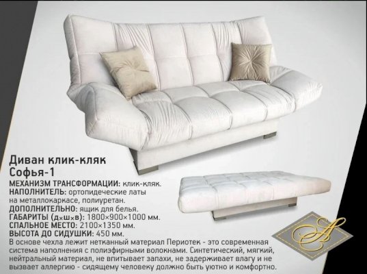 Клик Кляк Софья-1 (Асмана) - за 51 682 руб. в Кстово. Купите на сайте kstovo.onlinemarketmebeli.ru или по телефону 8(800)505-30-63 уже сегодня! Уточнить наличие, комплектацию, актуальную цену можно бесплатно у менеджера ежедневно. Закажите Клик Кляк Софья-1 (Асмана) до конца акции! Доступна покупка в кредит, рассрочку. Доставим со склада или на заказ.