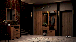 Какой бы не была Ваша прихожая, с мебелью из коллекции Nature Вы сможете обустроить ее рационально и с наименьшими затратами. Современный стиль, материал под натуральное дерево, грубые детали добавят стиля входной зоне Вашей квартиры.