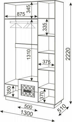 • Внутреннюю компоновку шкафа можно собрать на левую или правую сторону, выбрав открывание центрального фасада.