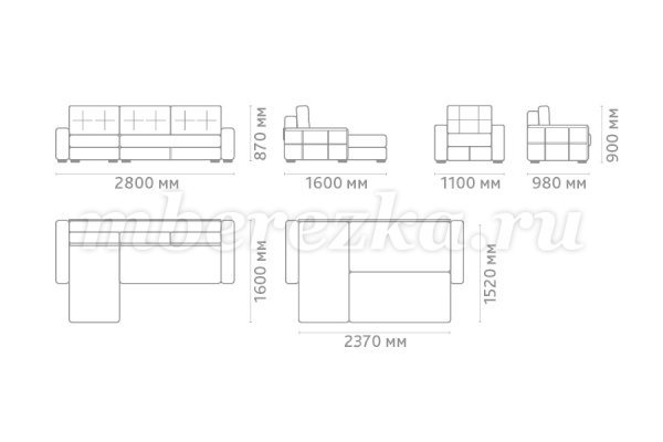 Размер дивана : 2800*1600*870 мм