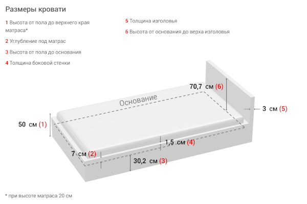 Рекомендуемая высота матраса: 20 см