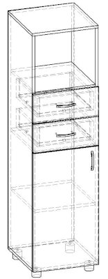 Одностворчатый стеллаж с двумя ящиками Лидер СТ.043.400-01 (Баронс)