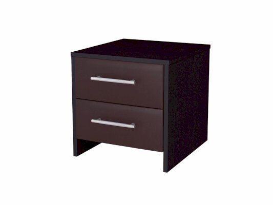 Удобная прикроватная тумба лаконичного дизайна с двумя выдвижными ящиками, обитыми экокожей.  Качественные европейские материалы, использованные при изготовлении, обеспечивают надежность и прочность конструкции, прекрасный внешний вид и возможность беспроблемного ухода за мебелью. Материалы Каркас тумбы выполнен из ЛДСП 16 мм. Направляющие ящиков без доводчиков, а фасад покрыт экокожей класса «Люкс». Данный материал легок в эксплуатации и долговечен. Обратите внимание на последовательность цветов при выборе исполнения: первый цвет - цвет корпуса мебели, второй цвет - цвет фасадов.