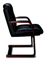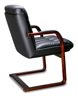 Кресло с низкой спинкой на деревянных полозьях, с подлокотниками прямоугольной замкнутой формы с мягкими накладками обитыми в цвет кресла.