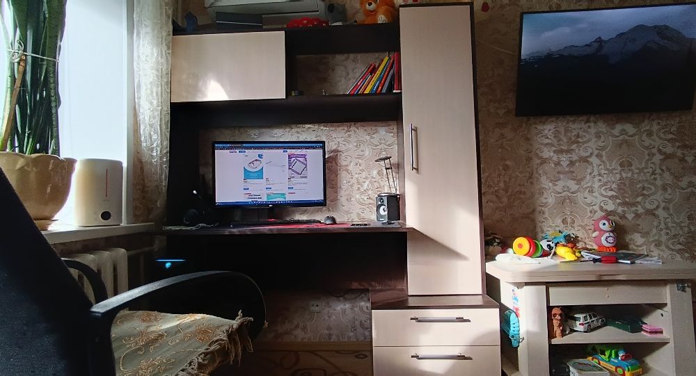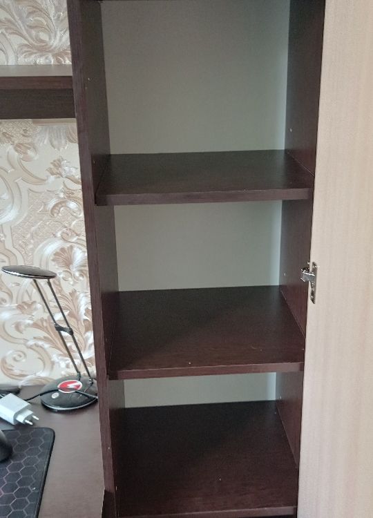 В общем покупкой доволен по сравнению со старым угловым столом более компактный, столешница прям целоее рабочее место можно использовать под верстачек или парту для школьника, пришлось засверлить отверстие под кабеля чтоб не пускать их за стеной, доработаю край столешницы слишком острый угол, по сборке где то часа 3 ушло но без метра никуда, в комплекте есть все и даже подробная инструеция со всеми размерами деталей, короче отличный стол - шкаф!!!! И еще остается место небольгое за нижней перегородкой испольщую чтобы спрятать стабилизатор от детей...