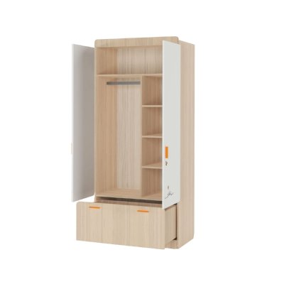 Наполнение: выдвижной ящик на шариковых направляющих глубиной 450 мм, петли с доводчиком, штанга для одежды, полки