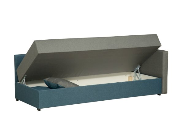 Универсальная модель. Долгую жизнь дивану обеспечивает надежный пружинный блок внутри конструкции. Есть в модели просторный и вместительный короб под спальной частью дивана, которую легко поднять и опустить в исходное положение при помощи механизмов подъема. Боковину дивана при сборке возможно установить как на правую, так и на левую сторону.