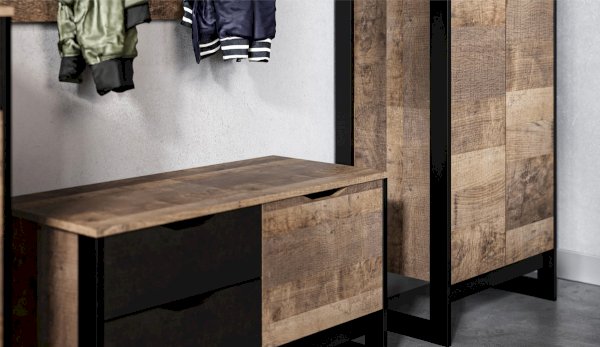 Стокгольм – это современная компактная модель для хранения. Два ящика на телескопических направляющих удобны для хранения необходимых мелочей или документов, а закрытые полки разместят в себе повседневную или домашнюю обувь. Особенность дизайна – это сочетание реалистичных по цвету и тактильности трендовых декоров, которые соответствуют последним городским тенденциям. «Дуб Гранж» привлекает имитацией вручную обработанного дерева и выразительной зернистой текстурой, характерной формой досок. Стильный серый цвет «Железного камня» с металлическими разводами и новая текстура состаренной штукатурки в сочетании с гладкостью металла вносят индустриальныи? колорит. Идеально компонуется со всеми модулями системы Стокгольм.